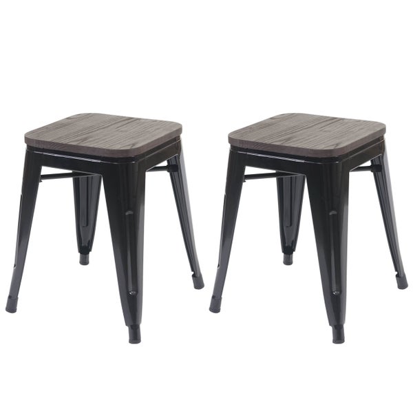 PROREGAL 2er-Set Hocker inkl. Holz-Sitzfläche Metall, Industriedesign, stapelbar Schwarz Metallhocker Sitzhocker