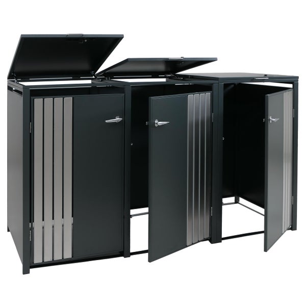 PROREGAL 3er-Mülltonnenverkleidung mit Deckel, HxBxT 122x200x84 cm, Anthrazit Edelstahl, Mülltonne 83kg