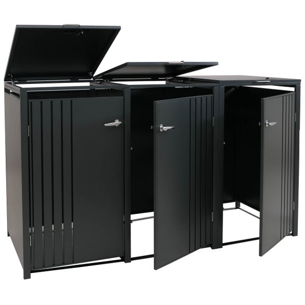 PROREGAL 3er-Mülltonnenverkleidung mit Deckel, HxBxT 122x200x84 cm, Anthrazit, Mülltonne 83kg