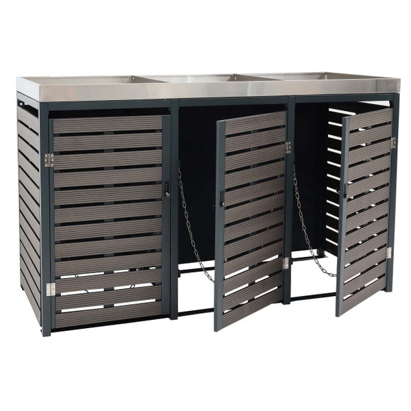 PROREGAL 3er Mülltonnenverkleidung mit Pflanzkasten, HxBxT 124x200x84 cm, Anthrazit, Mülltonne WPC Edelstahl 107kg