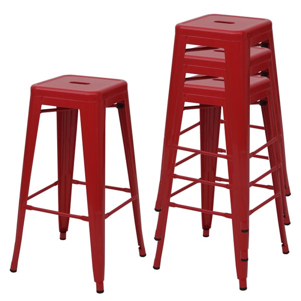 PROREGAL 4er-Set Barhocker Sitzhöhe 77cm Metall Industriedesign stapelbar Rot Barstuhl Tresenhocker