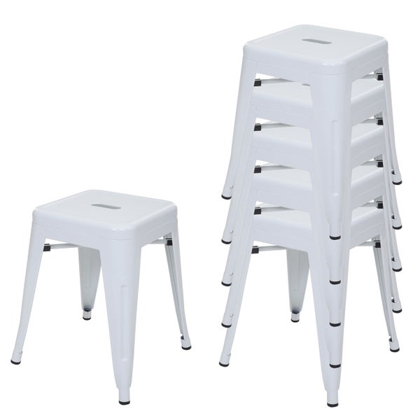 PROREGAL 6er-Set Hocker Sitzhöhe 46cm Metall, Industriedesign, stapelbar Weiß Metallhocker Sitzhocker