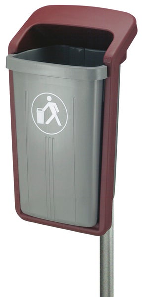PROREGAL Abfallsammler Für den Außenbereich Wand und Rohrbefestigung 50 Liter HxBxT 84,5 x 39 x 46 cm Kunststoff Grau-Rot