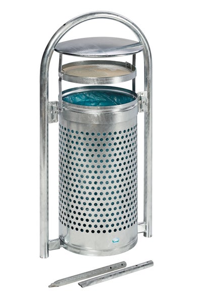 PROREGAL Abfallsammler Mit Rohrbogenständer Aschereinsatz Zum Einbetonieren 60 70 Liter HxBxT 116,5 x 58 x 38 cm Verzinkter Stahl Feuerverzinkt