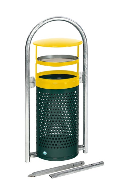 PROREGAL Abfallsammler Mit Rohrbogenständer Aschereinsatz Zum Einbetonieren 60 70 Liter HxBxT 116,5 x 58 x 38 cm Verzinkter Stahl Grün Gelb