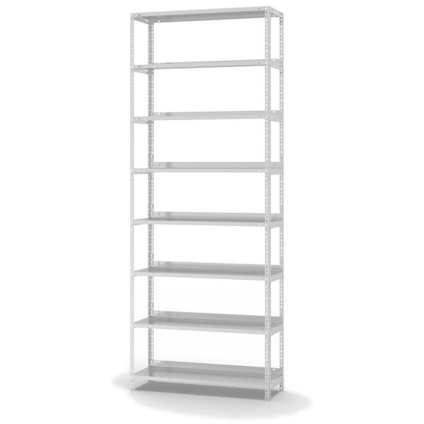 PROREGAL Aktenregal Schraubsystem Grundregal HxBxT 255 x 100 x 30 cm 8 Ebenen Fachlast 60 kg Mit Deckboden Einseitig Nutzbar Lichtgrau