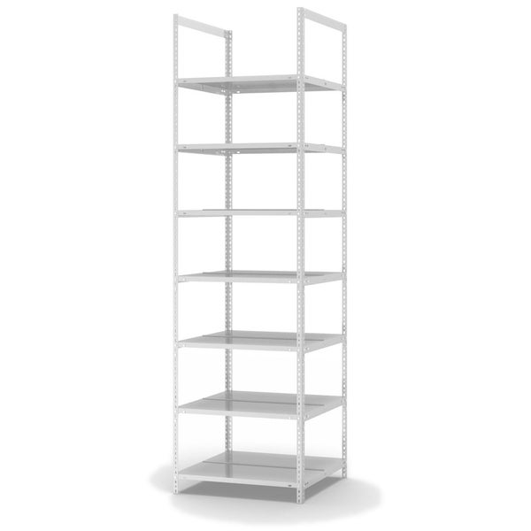 PROREGAL Aktenregal Schraubsystem Grundregal HxBxT 255 x 75 x 60 cm 7 Ebenen Fachlast 90 kg Ohne Deckboden Beidseitig Nutzbar Lichtgrau