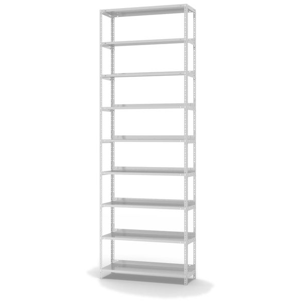 PROREGAL Aktenregal Schraubsystem Grundregal HxBxT 290 x 100 x 30 cm 9 Ebenen Fachlast 60 kg Mit Deckboden Einseitig Nutzbar Lichtgrau