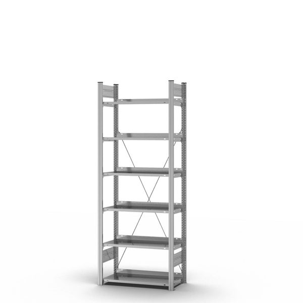 PROREGAL Aktenregal Stecksystem T-Profil Grundregal HxBxT 200 x 75 x 30 cm 6 Ebenen Fachlast 60 kg Einseitig Nutzbar Verzinkt