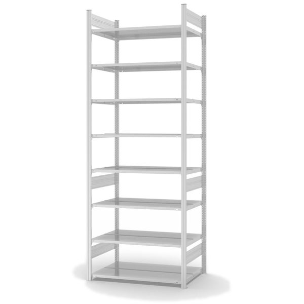 PROREGAL Aktenregal Stecksystem T-Profil Grundregal HxBxT 270 x 100 x 60 cm 8 Ebenen Fachlast 90 kg Beidseitig Nutzbar Lichtgrau