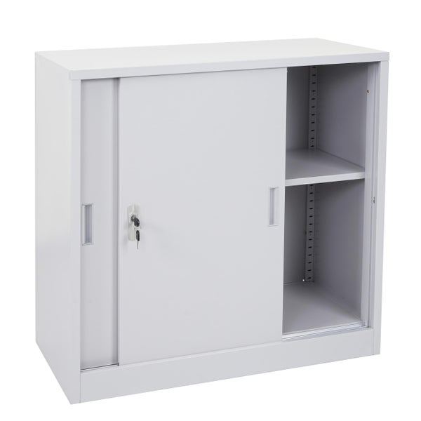 PROREGAL Aktenschrank, klein HxBxT 90x90x45cm mit abschließbaren Schiebetüren Grau| Stahlschrank Büroschrank