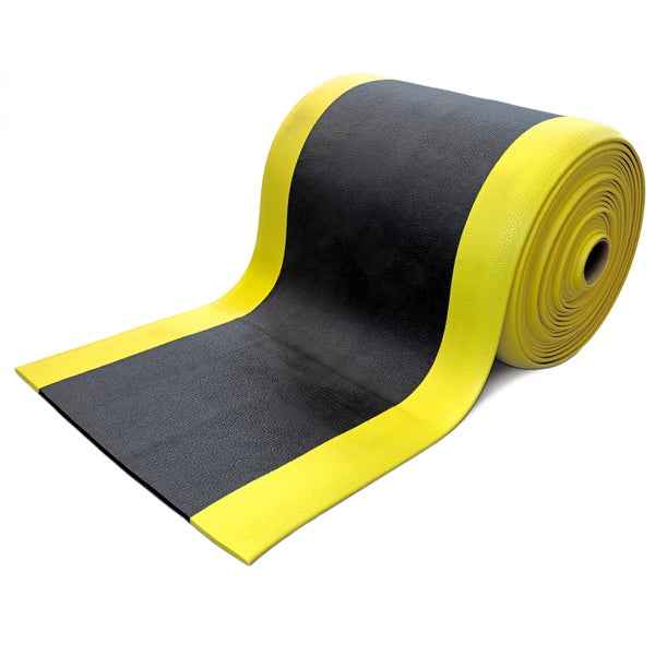 PROREGAL Anti-Ermüdungsmatte aus Vinyl | HxBxT 1x60x1800cm | gelb/schwarz | Arbeitsplatzmatte | Anti-Rutsch, Matte, Fußmatte