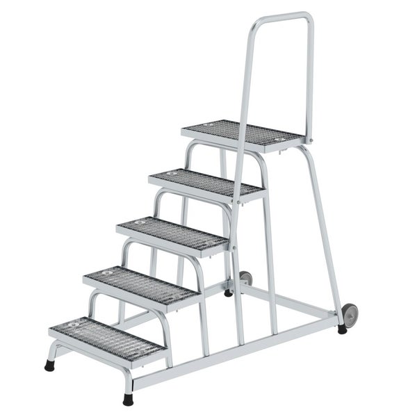 PROREGAL Arbeitspodest Starr Mit Rollen und Handlauf 5 Stufen Stahl-Gitterrost Rutschfeste Kunststoffschuhe