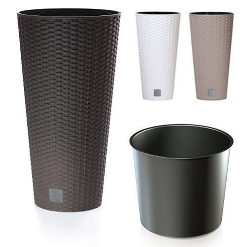 PROREGAL Blumentopf Rattan Rund 250mm 9/15,5 Lit H-476mm Rato Tubus, weiß