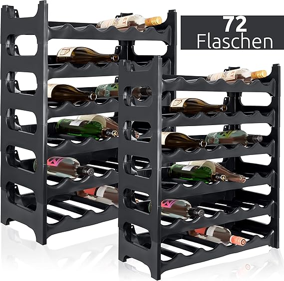PROREGAL CURVA Weinregal 12x Ebenen für 72 FlaschenHxBxT 144x60x30cmSchwarz