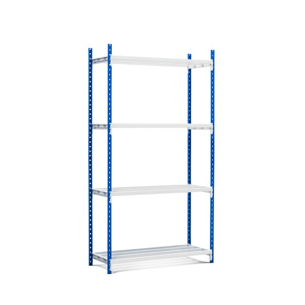 PROREGAL Fachbodenregal Maximus HxBxT 180 x 125 x 60 cm 4 Ebenen Offener Fachboden Fachlast 152 kg Lichtblau-Lichtgrau