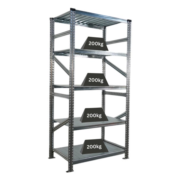 PROREGAL Fachbodenregal Proximo 200x90x60cm 5 Ebenen Fachlast 200 Beidseitig nutzbar Verzinkt