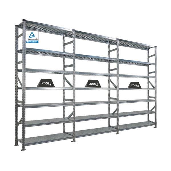PROREGAL Fachbodenregal Proximo Stecksystem 250x360x50cm 7 Ebenen Beidseitig nutzbar Verzinkt