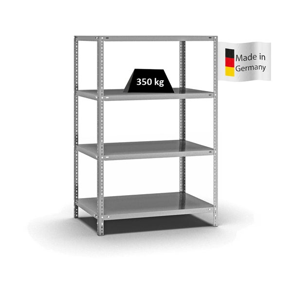 PROREGAL Fachbodenregal Schraubsystem Heavy-Duty Grundregal HxBxT 150 x 100 x 60 cm 4 Ebenen Fachlast 350 kg Beidseitig Nutzbar Verzinkt