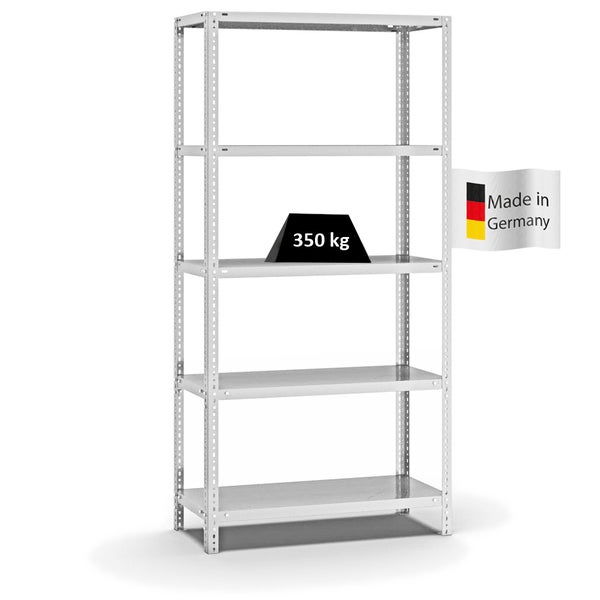 PROREGAL Fachbodenregal Schraubsystem Heavy-Duty Grundregal HxBxT 200 x 100 x 40 cm 5 Ebenen Fachlast 350 kg Beidseitig Nutzbar Lichtgrau