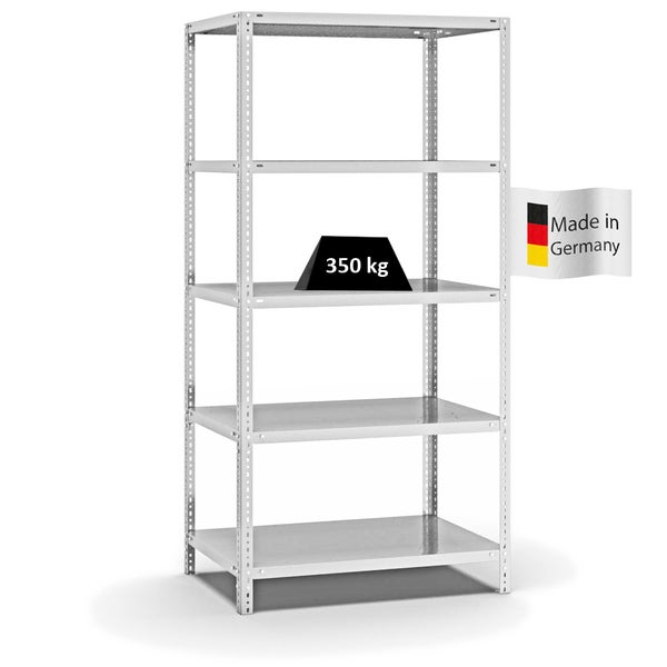 PROREGAL Fachbodenregal Schraubsystem Heavy-Duty Grundregal HxBxT 200 x 100 x 60 cm 5 Ebenen Fachlast 350 kg Beidseitig Nutzbar Lichtgrau