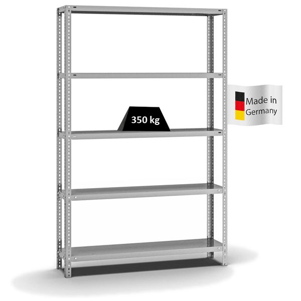 PROREGAL Fachbodenregal Schraubsystem Heavy-Duty Grundregal HxBxT 200 x 130 x 30 cm 5 Ebenen Fachlast 350 kg Beidseitig Nutzbar Verzinkt