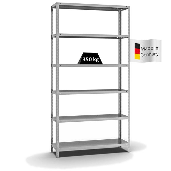 PROREGAL Fachbodenregal Schraubsystem Heavy-Duty Grundregal HxBxT 250 x 130 x 40 cm 6 Ebenen Fachlast 350 kg Beidseitig Nutzbar Verzinkt