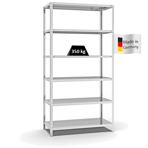 PROREGAL Fachbodenregal Schraubsystem Heavy-Duty Grundregal HxBxT 250 x 130 x 60 cm 6 Ebenen Fachlast 350 kg Beidseitig Nutzbar Lichtgrau