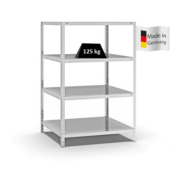 PROREGAL Fachbodenregal Schraubsystem Light-Duty Grundregal HxBxT 150 x 100 x 80 cm 4 Ebenen Fachlast 125 kg Beidseitig Nutzbar Lichtgrau