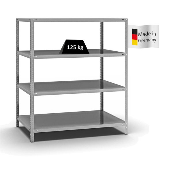 PROREGAL Fachbodenregal Schraubsystem Light-Duty Grundregal HxBxT 150 x 130 x 80 cm 4 Ebenen Fachlast 125 kg Beidseitig Nutzbar Verzinkt