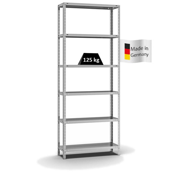 PROREGAL Fachbodenregal Schraubsystem Light-Duty Grundregal HxBxT 250 x 100 x 30 cm 6 Ebenen Fachlast 125 kg Beidseitig Nutzbar Verzinkt