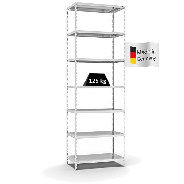 PROREGAL Fachbodenregal Schraubsystem Light-Duty Grundregal HxBxT 300 x 100 x 50 cm 7 Ebenen Fachlast 125 kg Beidseitig Nutzbar Lichtgrau