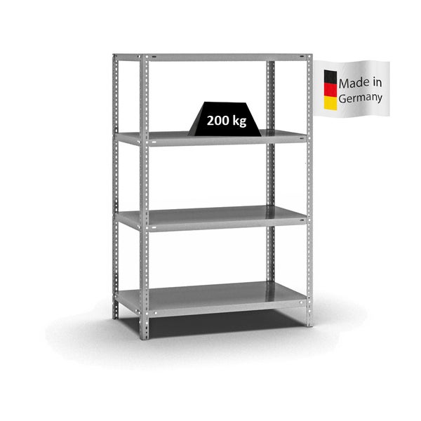 PROREGAL Fachbodenregal Schraubsystem Medium-Duty Grundregal HxBxT 150 x 100 x 50 cm 4 Ebenen Fachlast 200 kg Beidseitig Nutzbar Verzinkt