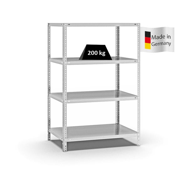 PROREGAL Fachbodenregal Schraubsystem Medium-Duty Grundregal HxBxT 150 x 100 x 60 cm 4 Ebenen Fachlast 200 kg Beidseitig Nutzbar Lichtgrau