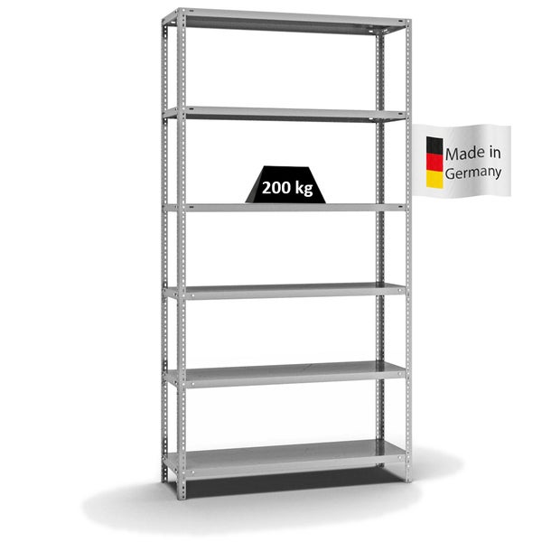 PROREGAL Fachbodenregal Schraubsystem Medium-Duty Grundregal HxBxT 250 x 130 x 40 cm 6 Ebenen Fachlast 200 kg Beidseitig Nutzbar Verzinkt