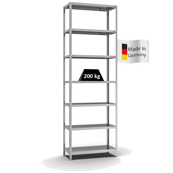 PROREGAL Fachbodenregal Schraubsystem Medium-Duty Grundregal HxBxT 300 x 100 x 40 cm 7 Ebenen Fachlast 200 kg Beidseitig Nutzbar Verzinkt