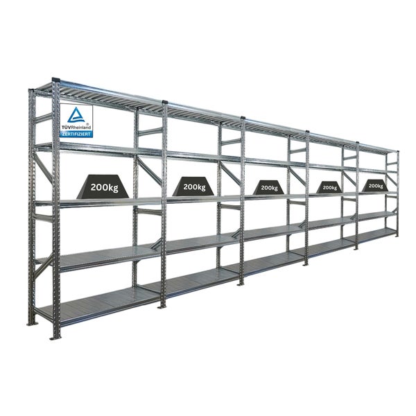 PROREGAL Fachbodenregal Stecksystem Proximo Komplettregal HxBxT 200 x 600 x 40 cm 5 Ebenen Fachlast 200 kg Beidseitig Nutzbar Verzinkt