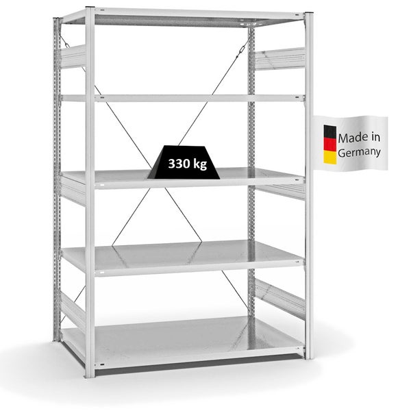PROREGAL Fachbodenregal Stecksystem T-Profil Heavy-Duty Grundregal HxBxT 200 x 130 x 80 cm 5 Ebenen Fachlast 330 kg Einseitig Nutzbar Lichtgrau