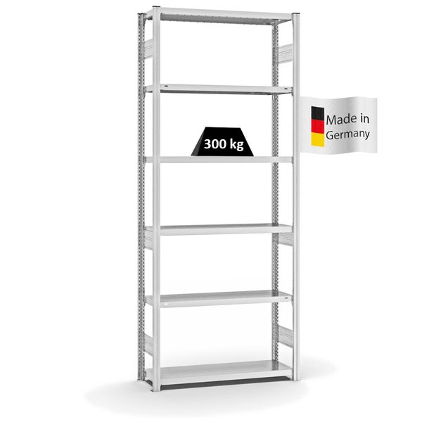PROREGAL Fachbodenregal Stecksystem T-Profil Heavy-Duty Grundregal HxBxT 250 x 100 x 30 cm 6 Ebenen Fachlast 300 kg Beidseitig Nutzbar Lichtgrau