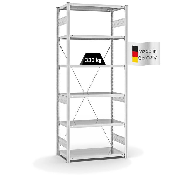 PROREGAL Fachbodenregal Stecksystem T-Profil Heavy-Duty Grundregal HxBxT 250 x 100 x 50 cm 6 Ebenen Fachlast 330 kg Einseitig Nutzbar Lichtgrau
