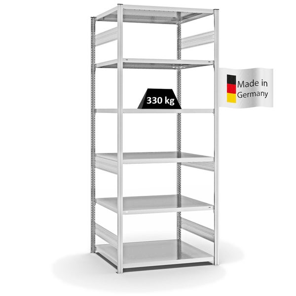 PROREGAL Fachbodenregal Stecksystem T-Profil Heavy-Duty Grundregal HxBxT 250 x 100 x 80 cm 6 Ebenen Fachlast 330 kg Beidseitig Nutzbar Lichtgrau