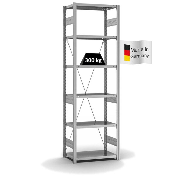 PROREGAL Fachbodenregal Stecksystem T-Profil Heavy-Duty Grundregal HxBxT 250 x 75 x 40 cm 6 Ebenen Fachlast 300 kg Einseitig Nutzbar Verzinkt