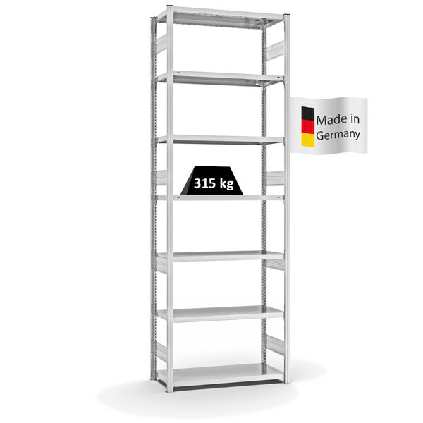 PROREGAL Fachbodenregal Stecksystem T-Profil Heavy-Duty Grundregal HxBxT 300 x 100 x 40 cm 7 Ebenen Fachlast 315 kg Beidseitig Nutzbar Lichtgrau
