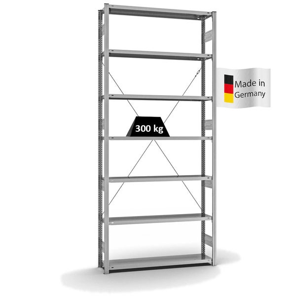 PROREGAL Fachbodenregal Stecksystem T-Profil Heavy-Duty Grundregal HxBxT 300 x 130 x 30 cm 7 Ebenen Fachlast 300 kg Einseitig Nutzbar Verzinkt