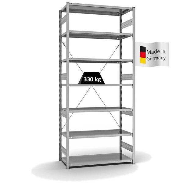 PROREGAL Fachbodenregal Stecksystem T-Profil Heavy-Duty Grundregal HxBxT 300 x 130 x 60 cm 7 Ebenen Fachlast 330 kg Einseitig Nutzbar Verzinkt