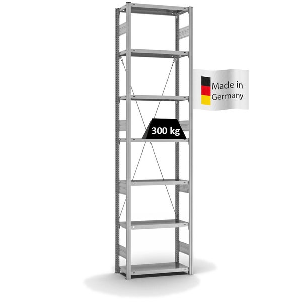 PROREGAL Fachbodenregal Stecksystem T-Profil Heavy-Duty Grundregal HxBxT 300 x 75 x 30 cm 7 Ebenen Fachlast 300 kg Einseitig Nutzbar Verzinkt