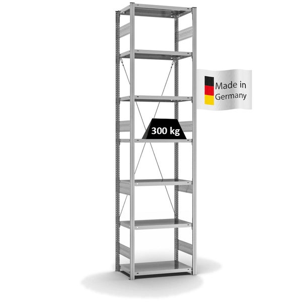 PROREGAL Fachbodenregal Stecksystem T-Profil Heavy-Duty Grundregal HxBxT 300 x 75 x 40 cm 7 Ebenen Fachlast 300 kg Einseitig Nutzbar Verzinkt