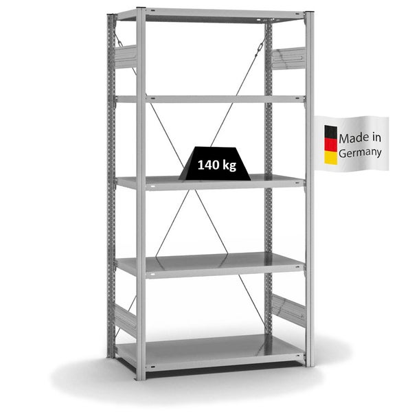 PROREGAL Fachbodenregal Stecksystem T-Profil Light-Duty Grundregal HxBxT 200 x 100 x 50 cm 5 Ebenen Fachlast 140 kg Einseitig Nutzbar Verzinkt