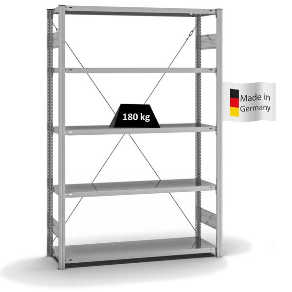 PROREGAL Fachbodenregal Stecksystem T-Profil Light-Duty Grundregal HxBxT 200 x 130 x 40 cm 5 Ebenen Fachlast 180 kg Einseitig Nutzbar Verzinkt