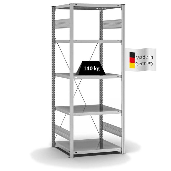 PROREGAL Fachbodenregal Stecksystem T-Profil Light-Duty Grundregal HxBxT 200 x 75 x 60 cm 5 Ebenen Fachlast 140 kg Einseitig Nutzbar Verzinkt